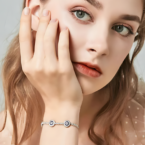 Deva Round Blue Evil Eyes 925 Sterling Silver Bracelet