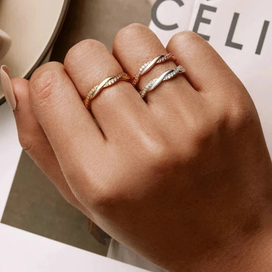 Deva 925 Sterling Silver Simple Twisted Ring 14K Gold Plated