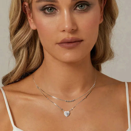 Deva 925 Sterling Silver Halo Heart Moissanite Pendant Necklace