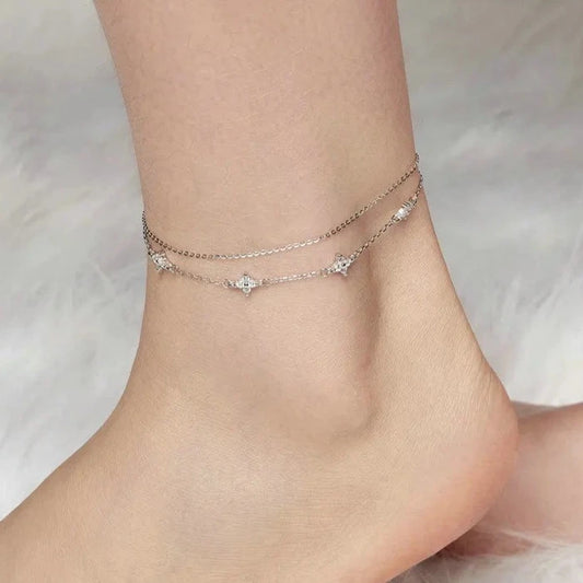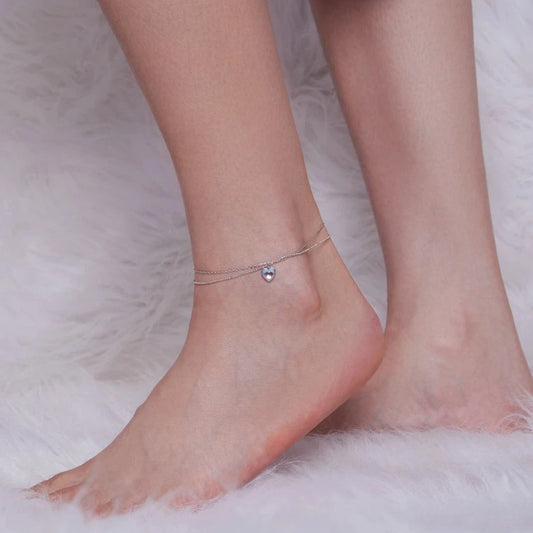 Deva 925 Silver Heart-Shaped Double-Layer Ankle Anklet
