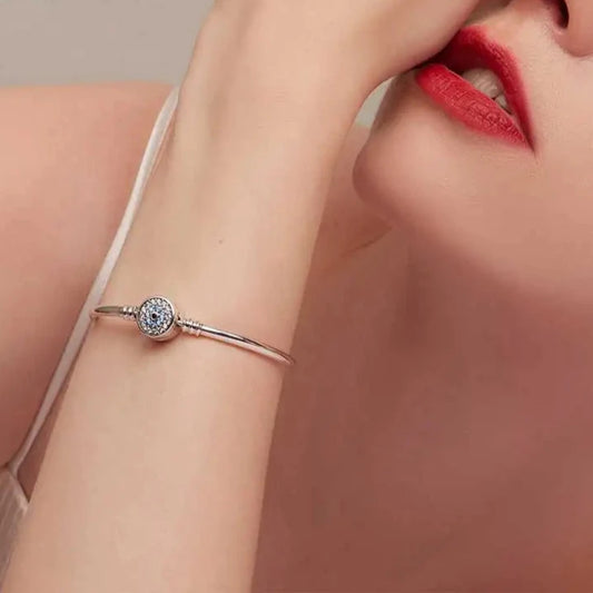 Deva Round Blue Evil Eyes 925 Sterling Silver Bracelet