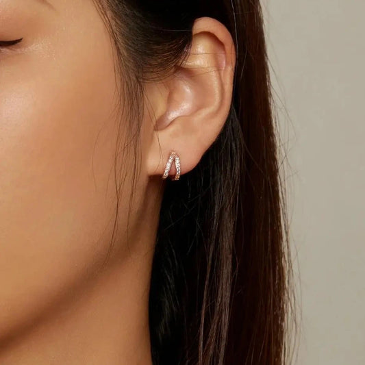 Deva Modern Zircon Crystal Double Hoop Earrings