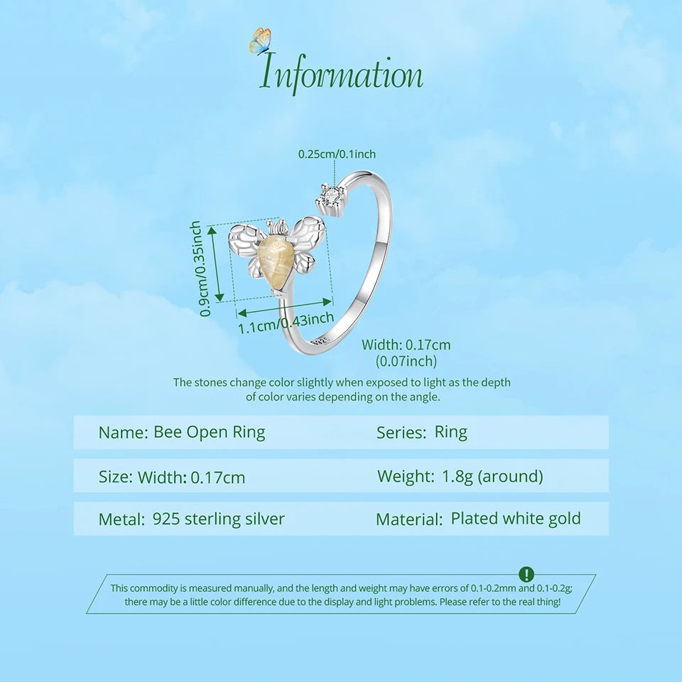 Deva 925 Sterling Silver Bee Adjustable Ring Embellished with Jade, Anniversary Birthday Jewelry Gift for Women and Girls