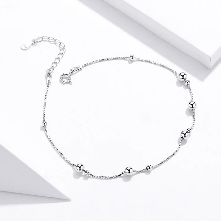 Round Beads Ankle Anklet Sterling Silver Anklets Chain Bracelet for Leg Female Foot Jewelry